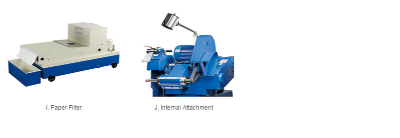 The grinding wheel spindle is supported by two special hydrodynamic bearings on the ends with five-point support, providing maximum rigidity and stability of spindle running. In case insufficient lubrication oil occurs, the spindle stops automatically to avoid wearing on the spindle and bearings
